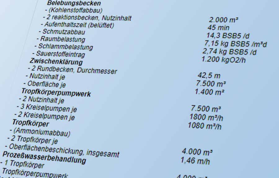 An Trockenwettertagen ist eine Abwassermenge von 35.000 bis 40.000 m³ mit einer mittleren Schmutzfracht von 350.000 EW zu erwarten.